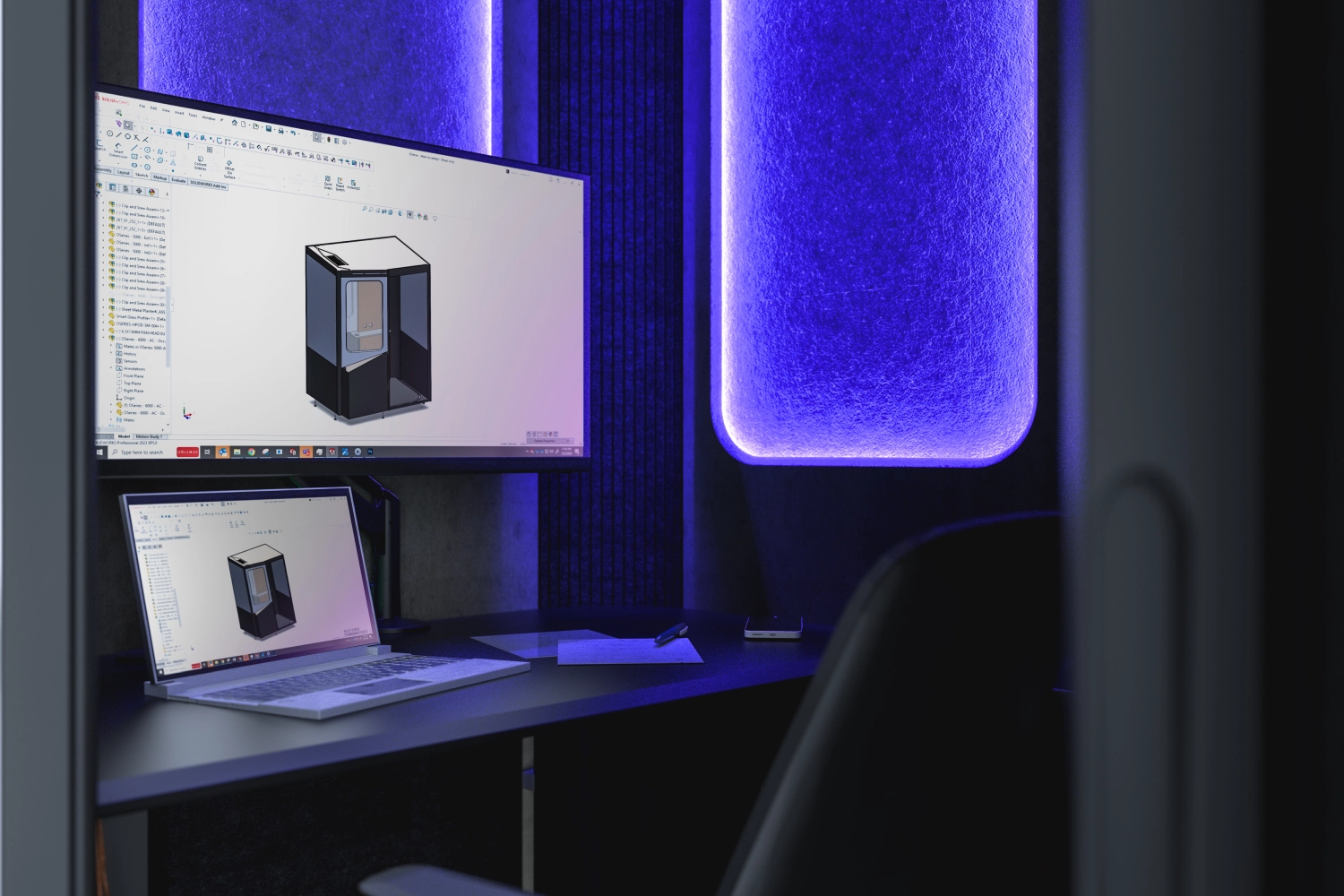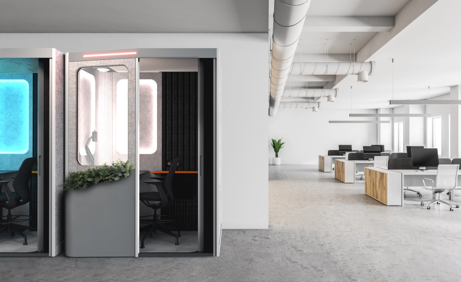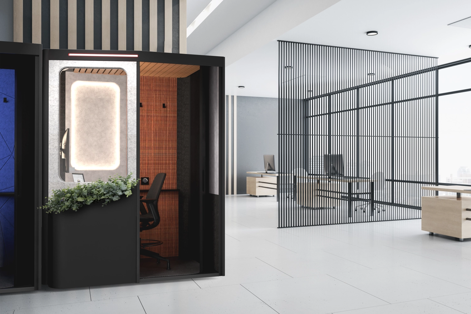 A private, customizable workspace with precision lighting and ventilation control, designed to fit seamlessly into any floor plan while boosting efficiency, retention, and space utilization