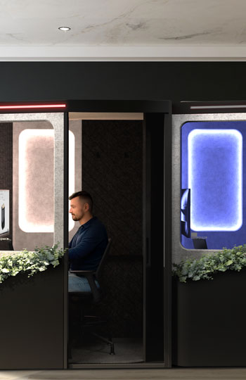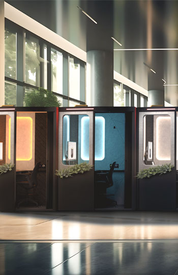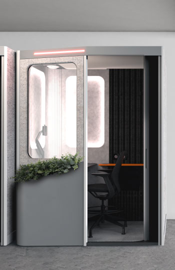 A private, customizable workspace with precision lighting and ventilation control, designed to fit seamlessly into any floor plan while boosting efficiency, retention, and space utilization